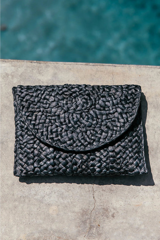En ventePoolside Black Straw Clutch