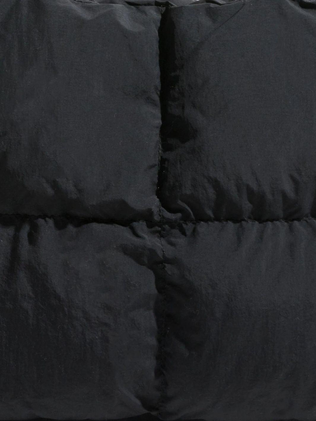 This quilted bag is made of nylon. It is composed inside of a main compartment. It is worn on the shoulder.