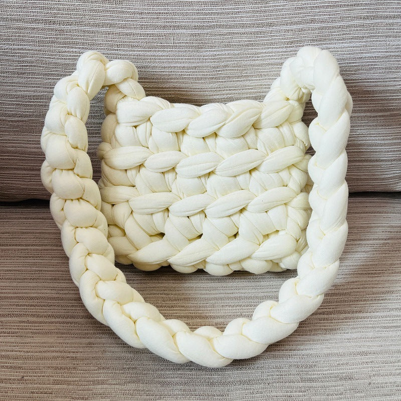 A simple, stylish and elegant handmade shoulder bag woven from a heavy cotton fabric with a unique texture.